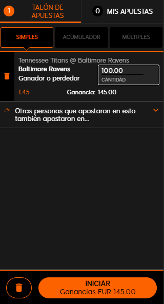 Ahora, solamente falta un paso para poder armar tus picks en el fútbol americano, conocer el proceso de apuesta. Por eso, tomaremos la plataforma de 888sport como ejemplo, para que conozcas el proceso a la perfección.